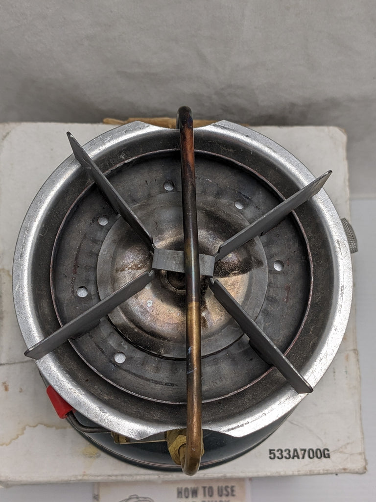 Pre-owned. Untested. No funnel, no instructions. Box is a bit worn and soiled. Box dated 1999 and Stove is Dec 2003.